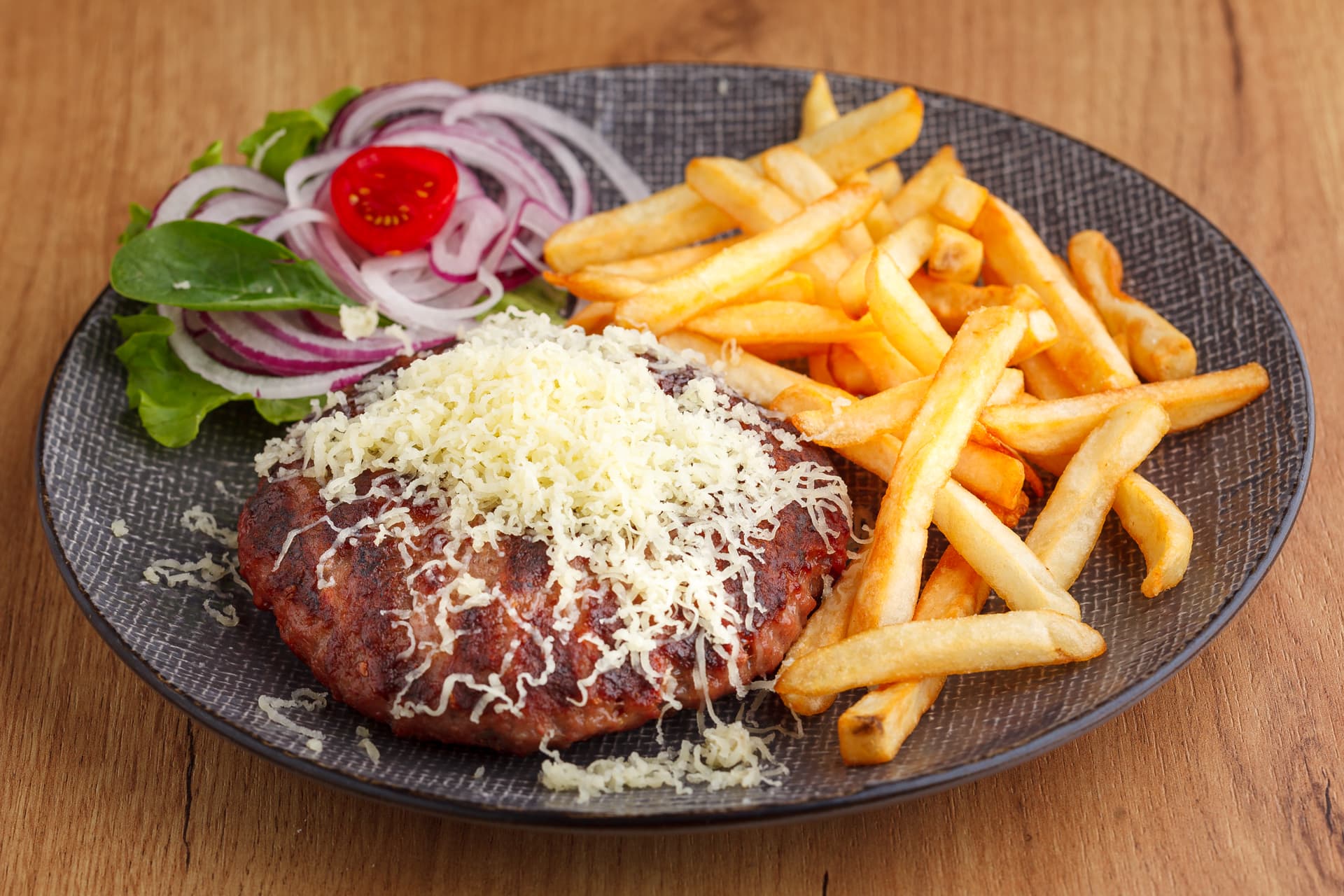 450g portion – Patty made from the best quality homemade grilled meat with a side dish (fries and onions)